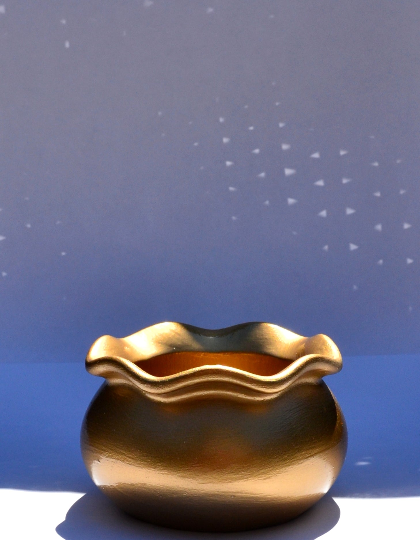 Its distinctive design with whimsical, wavy edges seems to invite you to a mysterious ceremony. But the true enchantment begins when you light it: hidden within the candle is a delicate glitter that, as the wax melts, creates a magical sparkle and shimmer, highlighting the magical nature of every moment.